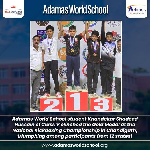 Adamas World School takes immense pride in celebrating the outstanding achievement of Khandekar Shadeed Hussain of Class V, who has clinched the Gold Medal at the National Kickboxing Championship held in Chandigarh!